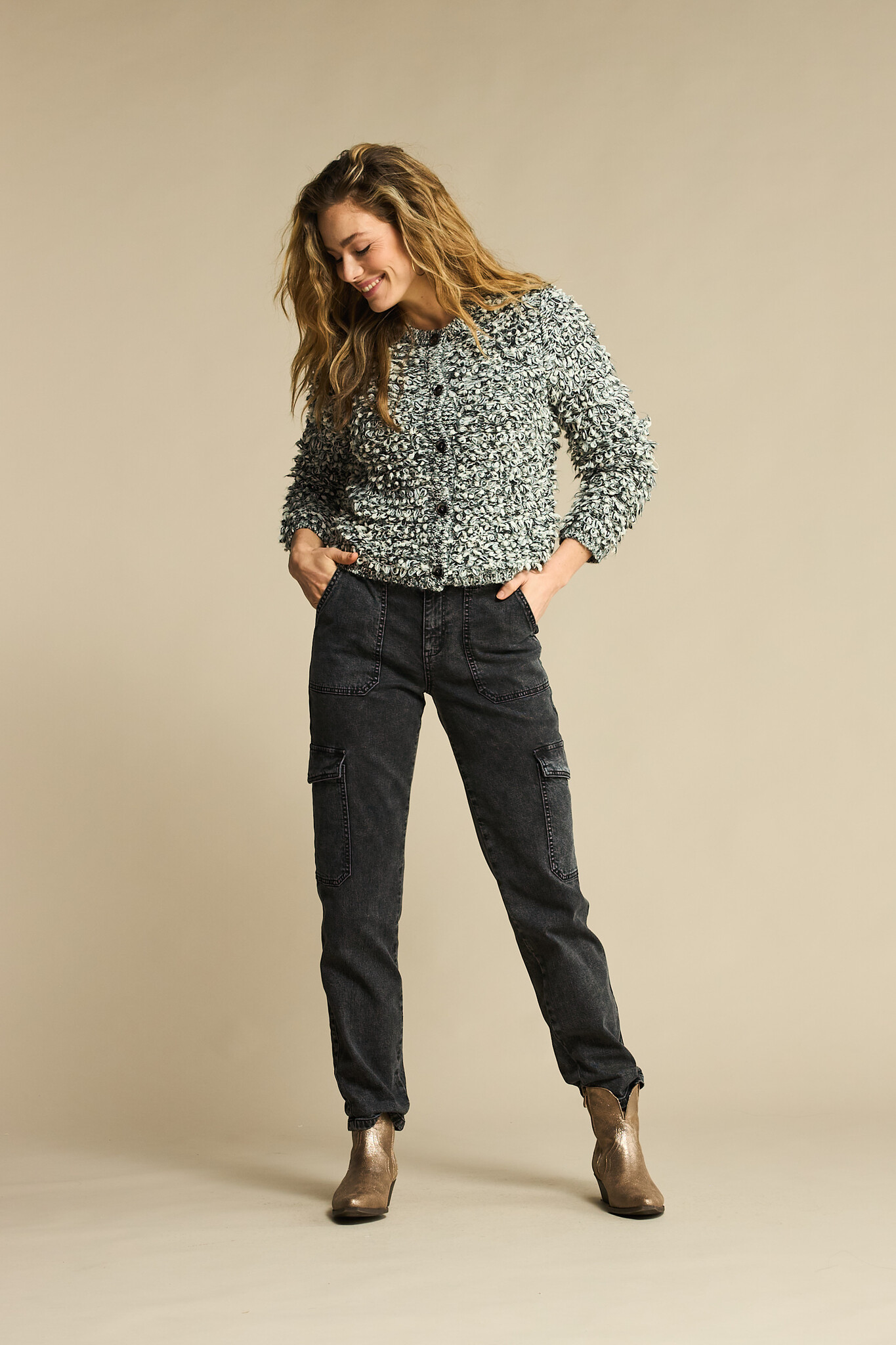 Broek Jana cargo black denim
