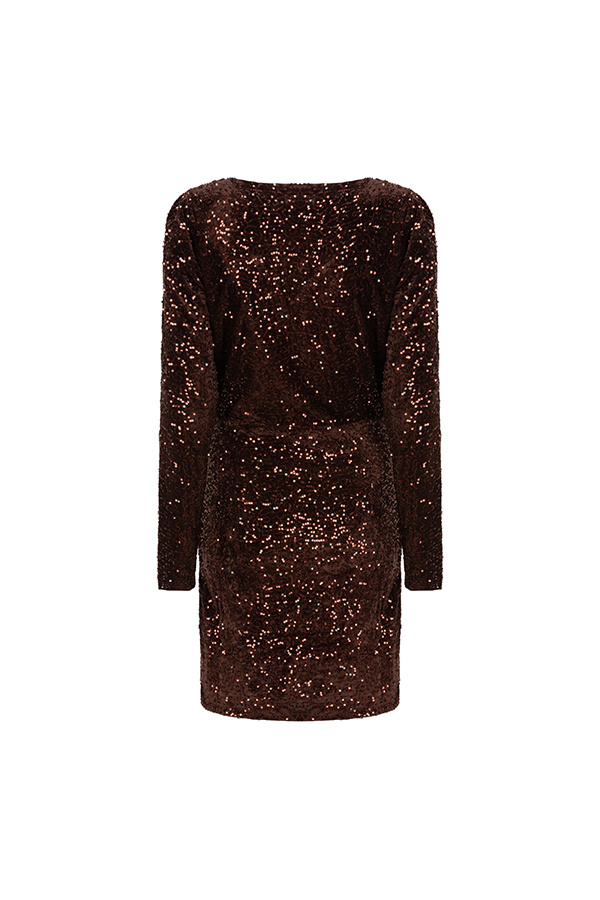 - Pasvorm : aangesloten, met pailetten en een knoopdetail aan de linkerzijde