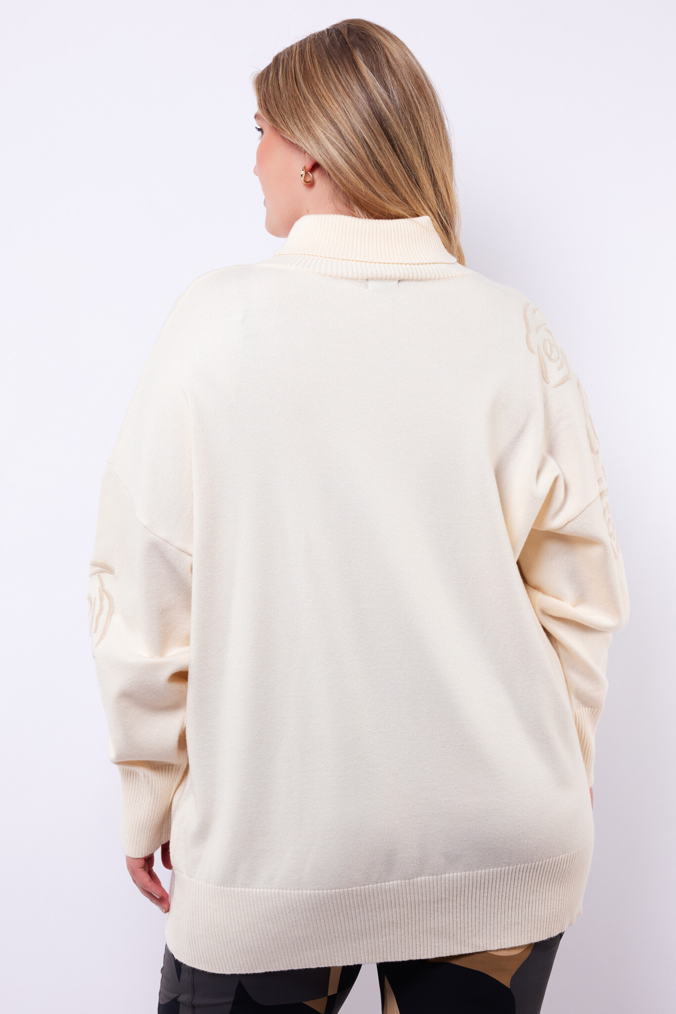 - Mouwlengte : lang, met subtiel bloemenmotief en ribboord